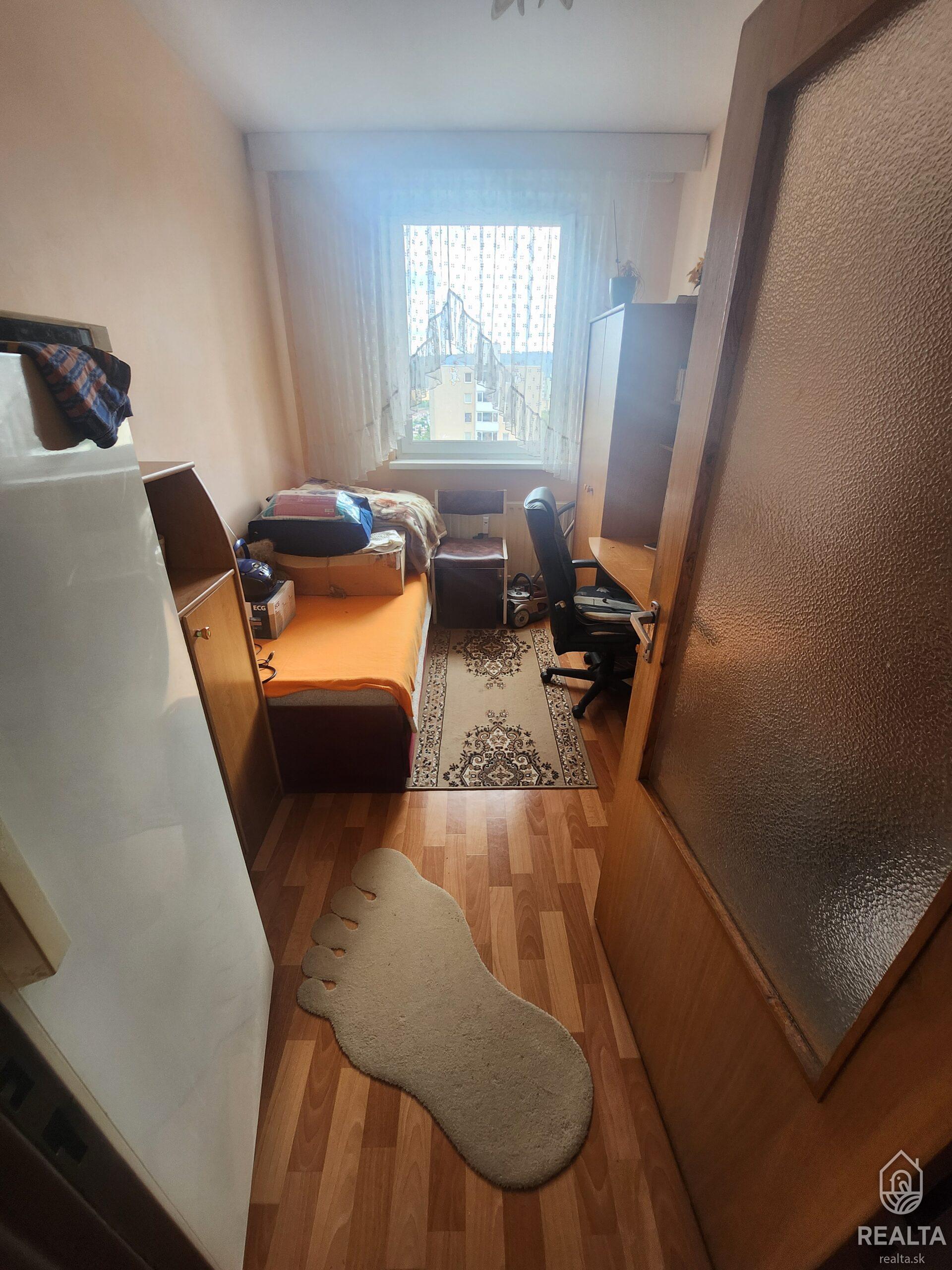 Byt pozostáva z troch izieb, samostatnej kuchyne, kúpeľne, WC, balkóna, pivnice a spoločného kumbálu na poschodí. Nachádza sa na 12. poschodí z 13 – vďaka tomu ponúka krásny výhľad a dostatok denného svetla.